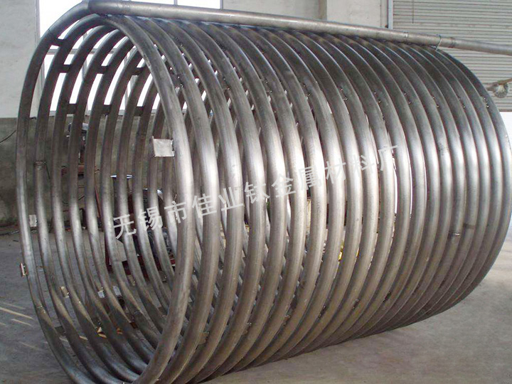 6、鈦盤管在某些介質(zhì)中不耐腐蝕如:氫氟酸、氟硅酸、濃度高于3%的鹽酸、發(fā)煙硝酸、濃度高于4%的硫酸、不充氣的沸騰甲酸等。